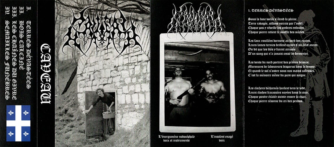 Debut demo by this new horde of mighty Québecois BM. Highly melodic, triumphant Black Metal, inspired by the likes of Monarque, Forteresse, Absurd, and Oi! music, particularly in the leads and martial rhythms of the first tracks. Songs of timeless nostalgia and deep connection to tradition and a land defiled by parasitism.