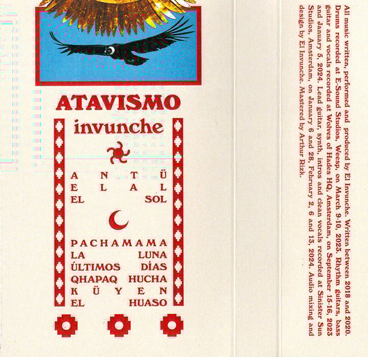 At last! Invunche's second full-length is finally spawned from the Ukhu Pacha. Supay, the god of death, is channelled to cast plagues, spiritual battle and the elemental destructive forces of nature upon modernity via the Inca Black Punk hymns engraved into "Atavismo". 6 years after the project's last full-length, and 3 years after the "Elal" promo which shook the earth like an Andean earthquake, "Atavismo" is finally unleashed and the Chilean-born master returns. Masterfully executed and more lapidated than ever before, Invunche still maintains its neverending stomps of poisonous Black Punk primitivism, like Manco Qhapac's troops marching forth to conquer and plunder, yet on this release the 70's Psych Rock elements and Shamanic passages are definitely explored much further with a keen and concise songwriting.