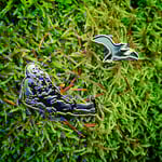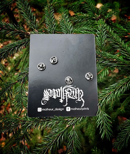 A two-pin set based on the norwegian artist Theodor Kittelsen's artwork "Fattigmannen" (The Pauper) from 1894-1895. The pins comes attached on a thick matte card with a reproduction of the artwork.