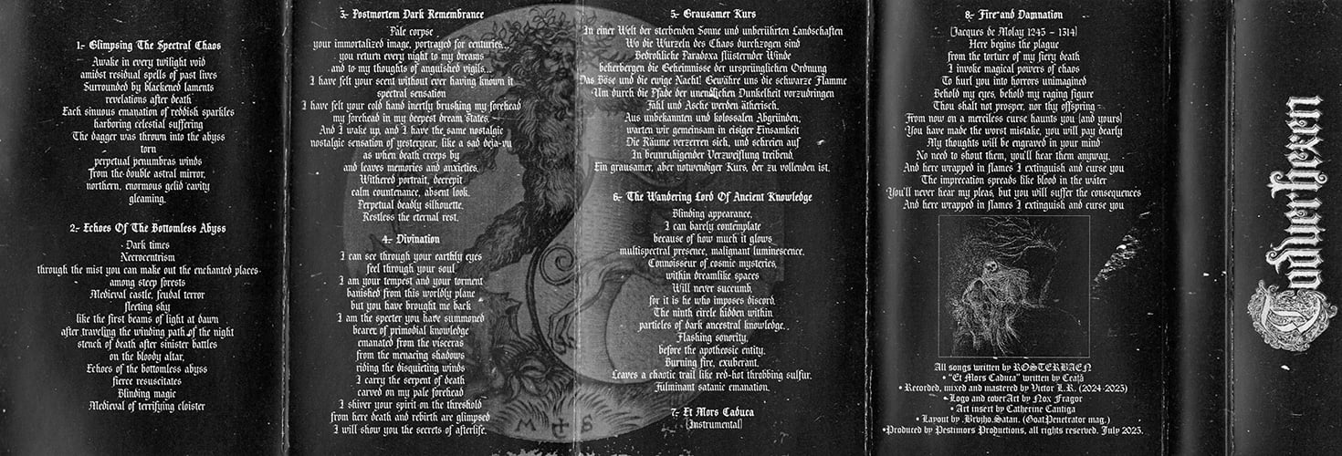 The album unravels like a clandestine incantation, where the relentless surge of black metal is subtly interlaced with the careful and shy occurrences of synthesisers. These ethereal whispers, dancing in the background, and occasional folk instrumentals bestow upon the composition a distinctly medieval characteristic. The guitar lines, both assertive and elegant, glide effortlessly through the soundscape, crafting passages that resonate as epic sagas told under the moonlight of an enigmatic realm.
